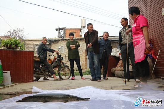 赶到农场围观的众多村民纷纷表示,从来没有见过这种鱼。有村民说这是野生的鱼,很滋补,出价2000多元想买回家给孩子补一补;还有观赏鱼的爱 好者表示想养着观赏。不过,大家的想法都被黄金齐拒绝了,随后黄金齐家人将惊现“怪鱼”的经历发到了朋友圈,受到了很多网友的关注,有网友认为这“怪鱼” 可能是外来入侵物种,为“世界十大凶猛淡水鱼”之一的雀鳝。